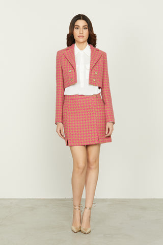 Gonna LORA corta con zip più bottoni a contrasto costa più punto ajour