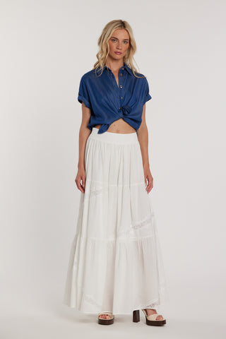 Gonna NELOPE lunga vita alta con elastico più balze più inserti pizzo