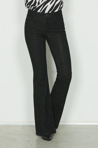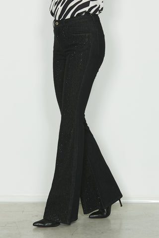 Jeans SCHIFFER_30 vita media 5ts full strass flaire fit denim black