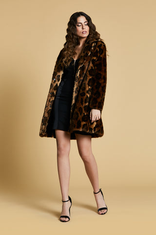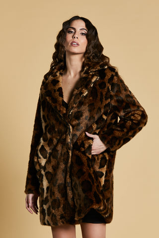 Pelliccia SUNAS eco manica lunga con profili piping più tasche maculata