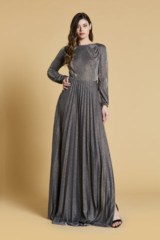Abito MOIL lungo manica lunga sc.barca più v schiena con catena Body più spacco ampio lurex