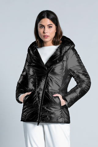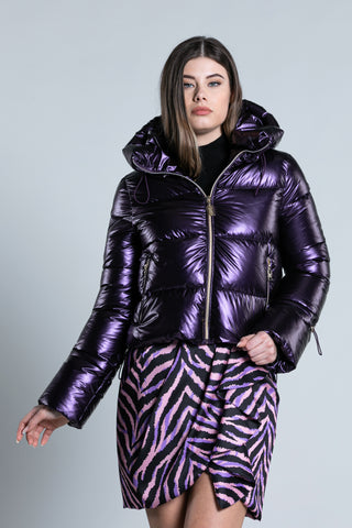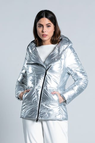 Piumino YLET manica lunga con zip tras.v più cappuccio effetto metallizzato