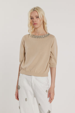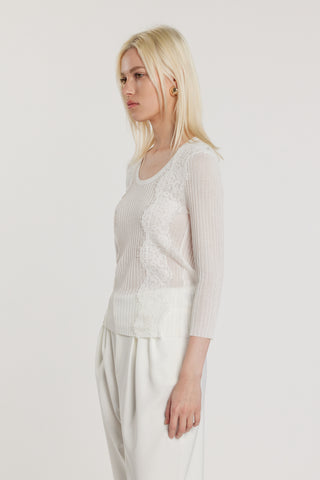 Maglia NOVAC maniche tre quarti scollo alla madonna con inserti pizzo costina