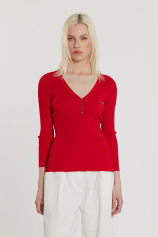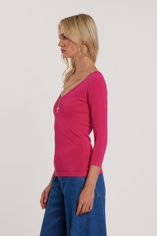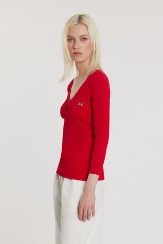 Maglia DENEUVE maniche tre quarti scollo a V con bottoncini più taschino costina