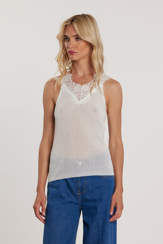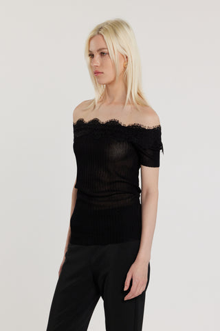 Maglia HAIFI maniche corte scollo barca con inserti pizzo costina