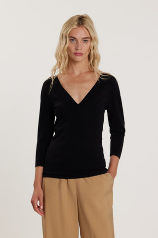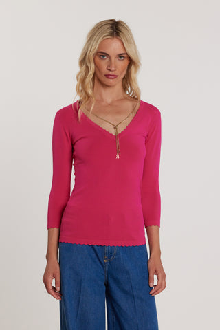 Maglia WINSLET maniche tre quarti scollo a V con bordi lavorazione smerlo più collana logo