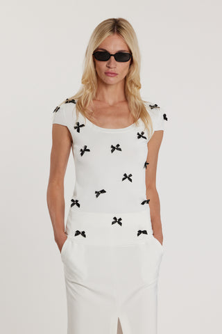 Maglia ELIZABETH maniche corte scollo alla madonna con fiocchi più strass