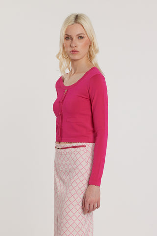 Maglia ADELE maniche lunghe scollo alla madonna con finta apertura più bottoni più applicazioni logo e fiocco