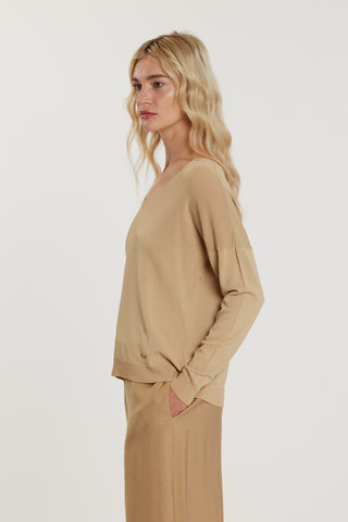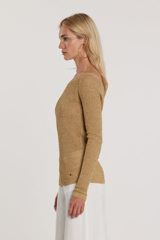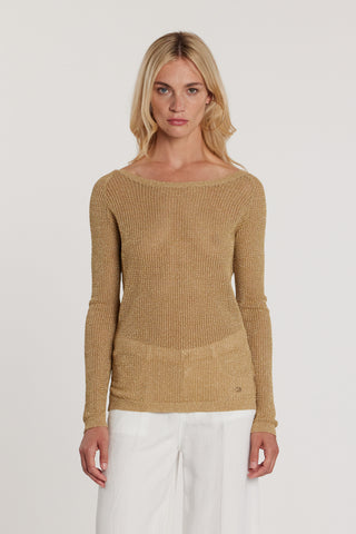 Maglia MARTINES maniche lunghe scollo barca più V rete effetto piquet più lurex