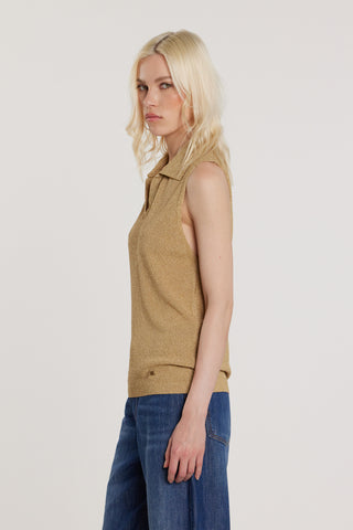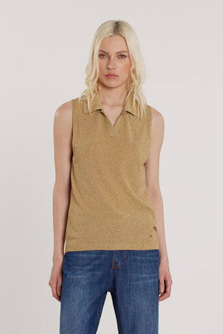 Maglia MARTIN smanicata con colletto rete effetto piquet con lurex