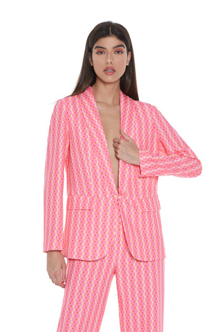 Giacca OKI manica lunga collo sciallato con patte più gancio fantasia anni 70