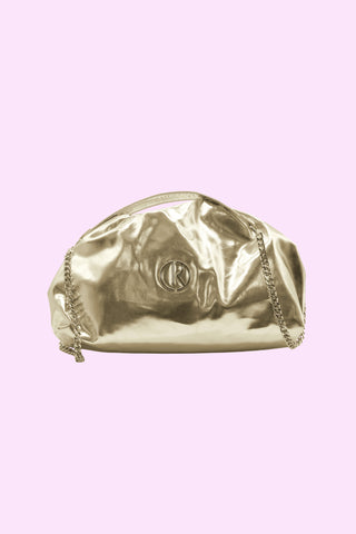 Borsa MIRROR_SMALL a mano con manico catena più ciond.logo più catenaccio vernice