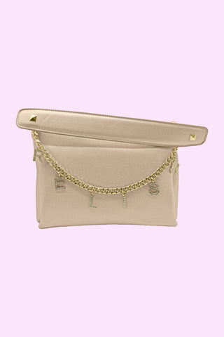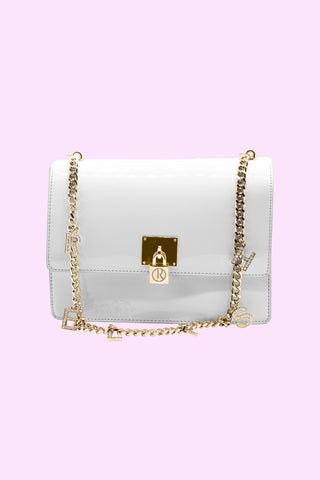 borsa MIRROR_BIG con tracolla catena più ciondoli logo più catenaccio vernice