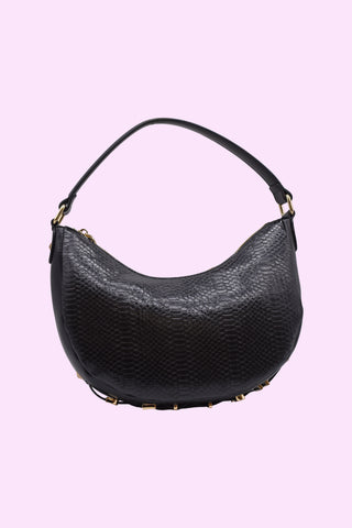 borsa PYTHON_LITTLE mezzaluna 1 manico più zip coccodrillo con borchie più logo ec