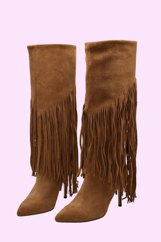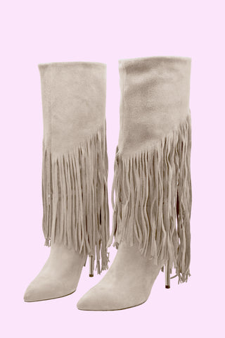 stivali KUMQUAT alti con frange pelle scamosciata