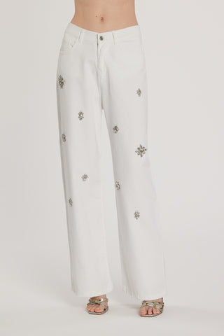 Pantalone GISELLE_15 vita media cinque tasche con applicazioni pietre loose fit bull