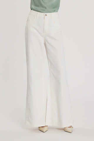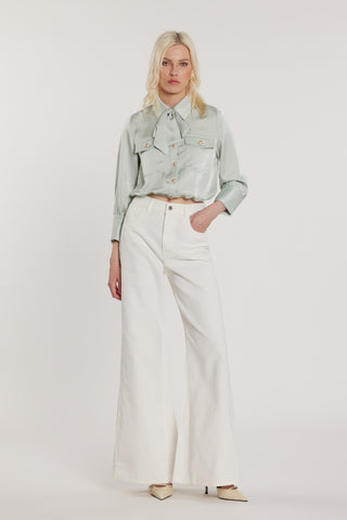 Pantalone CAMILLE vita alta palazzo con elastico più tasche denim