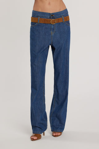 Pantalone BELTERI vita alta con passanti scesi più cintura denim