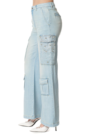 Jeans PATZY_20 V.Medio-Bassa con Tasconi più Patte con Pietre Lav.Bleach Denim