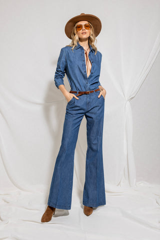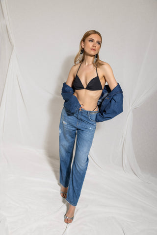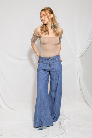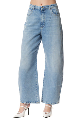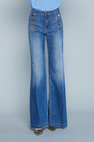 Jeans PALENCIA V.Alta Palazzo con Passanti Punta più Dettaglio Bottoni Denim