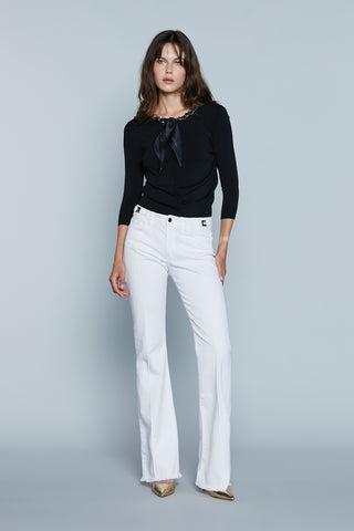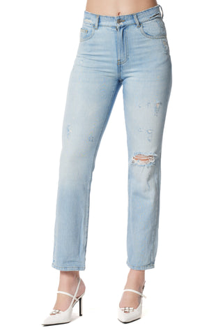 Jeans ELLELONG_24 V.Media con Strass Animalier Straight Fit L.Bleach Denim