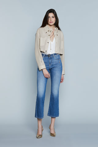 Jeans LACORUNA Vita Alta Cropped con Cintura più Fibbia Logo 5Ts Denim