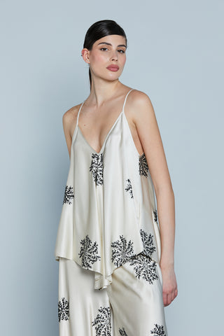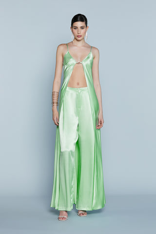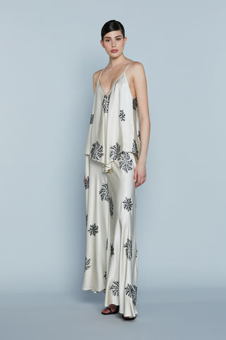 Tuta FORTALEZA con Top più Pantalone Vita Alta Palazzo Raso Ric. Fiori Paillettes