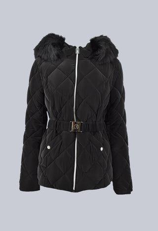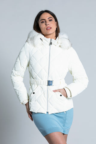 Piumino SPORTYU manica lunga con cappuccio più ecoPelliccia stacc. più Cintura più ts imp.rombi
