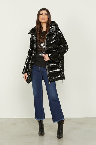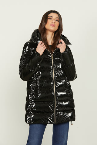 Piumino YLET manica lunga con zip tras.v più cappuccio effetto metallizzato