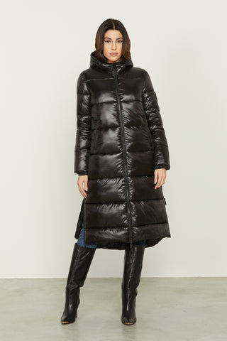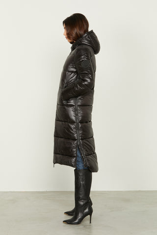 Piumino SHIRLEY lungo smanicato con cappuccio+tasche full paillettes