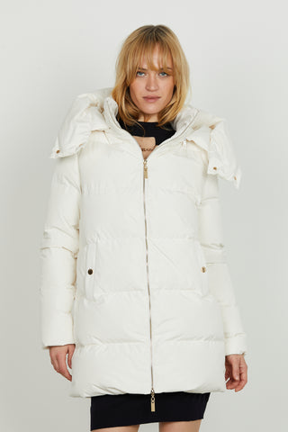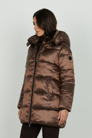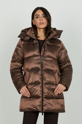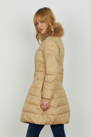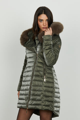 Piumino DIESSAM lungo manica lunga con ts più zip trasv. Più capp. Più ecopel.stacc. Eff.satin