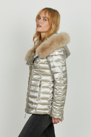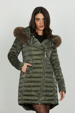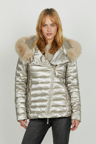 Piumino PYLEM manica lunga con ts più zip trasv. Con capp. Più ecopelle staccabile effetto satin