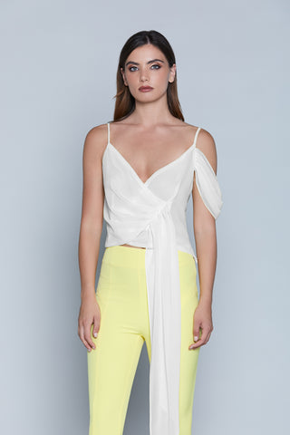 Top JASMINE corto monospalla mezza manica con pieghe più fusciacca