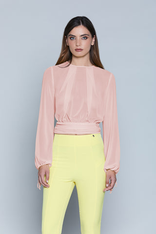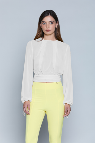 Blusa CIP manica lunga con arriccio più nastrino con pinces più volant schiena