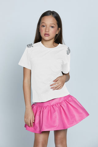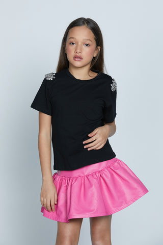 T-shirt ERI mezza manica con applicazione spalle cabochon