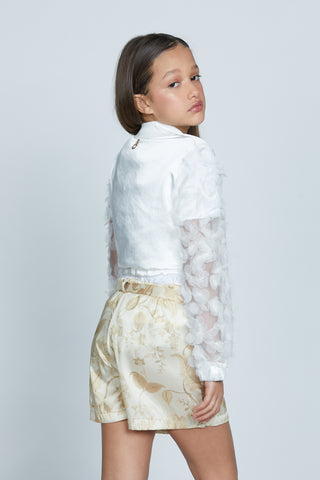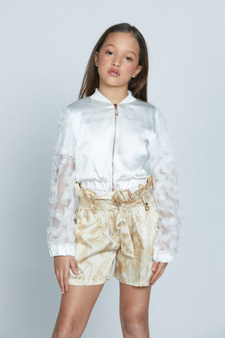 Giubbino ANICE corto manica lunga con zip più maniche tulle petali fiori raso