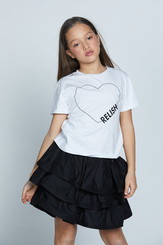 T-shirt MANAMI mezza manica con stampa cuore più scritta relish glitter