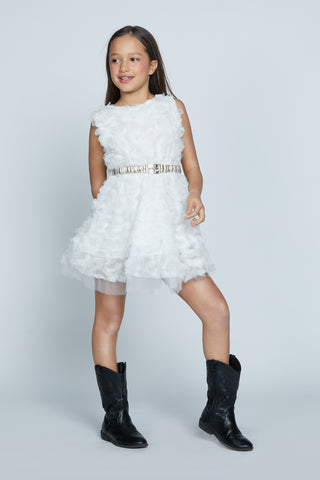 Abito MILTONIA corto senza maniche con cintura tulle petali fiori