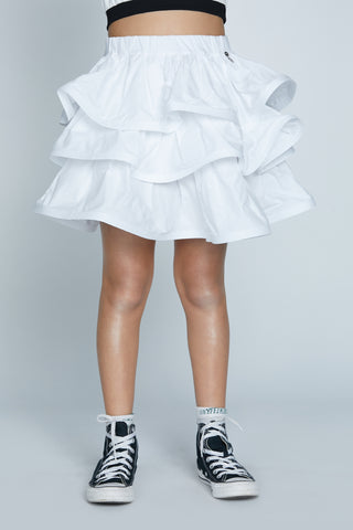 Abito CALATEA corto con balze più rouches tulle plumetis più cintura fiocco