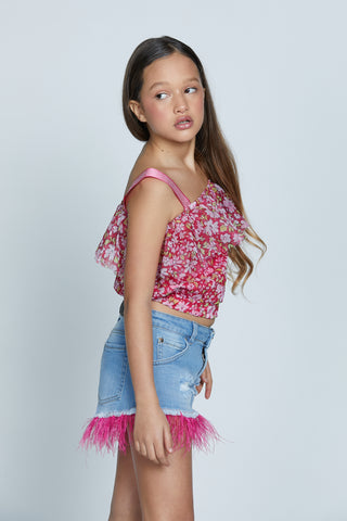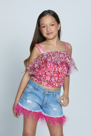 Top CALADIO con volant più bande logate fantasia fiorellini