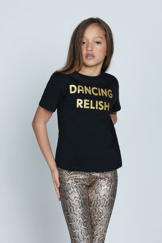 T-shirt MEGU mezza manica con risvolto più stampa rlsh più strass più catene pendenti