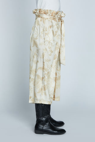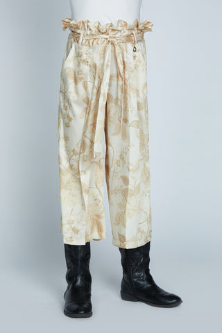 Pantalone LANTANA con cintura più arricci gale fantasia fiori damascata
