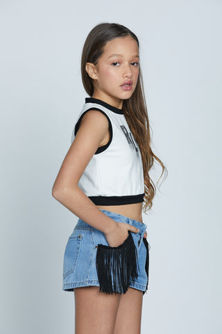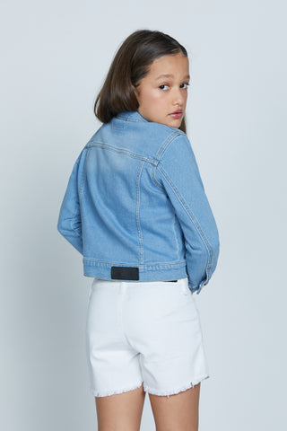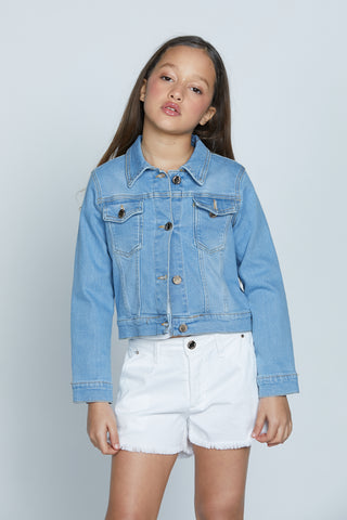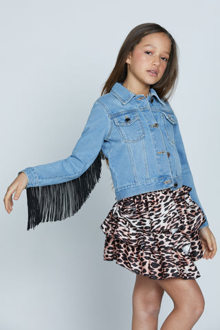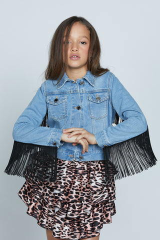 Giubbino TELOPEA manica lunga denim con passamaneria frange