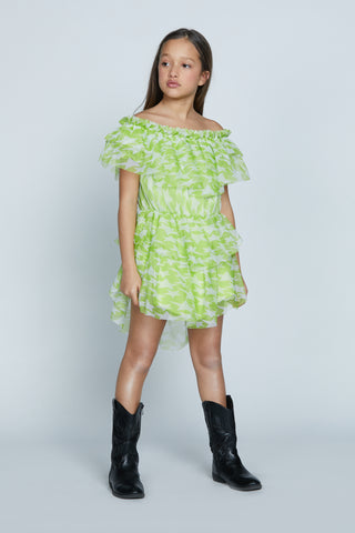 Abito ALYSSA corto con balze più rouches fantasia tulle stelle