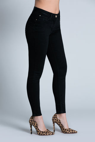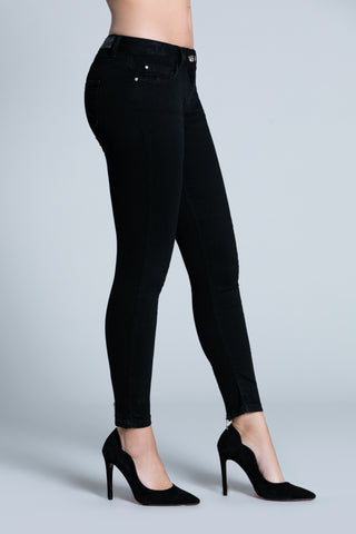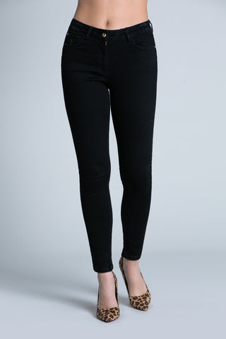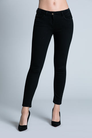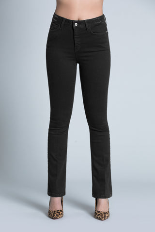 Jeans MARILYN_B 5 ts con ricamo logo più zip f.do più abrasioni cint. black denim