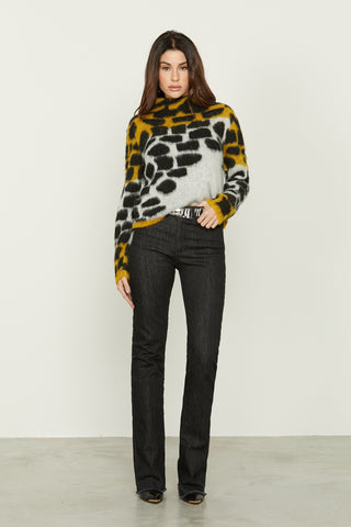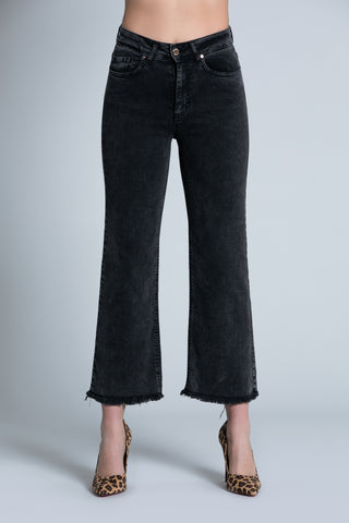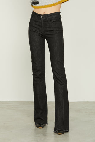 Panta SHIFFER_3 vita media 5tasche con f.do sfrangiato flaire fit denim black