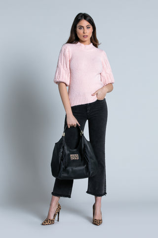 Jeans CREEP vita alta 5 tasche con impunture più f.do sfrangiato denim black