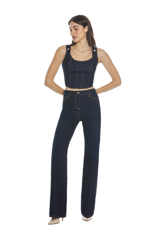 Jeans ZETTA vita alta crop con bustino alto 5 tasche denim
