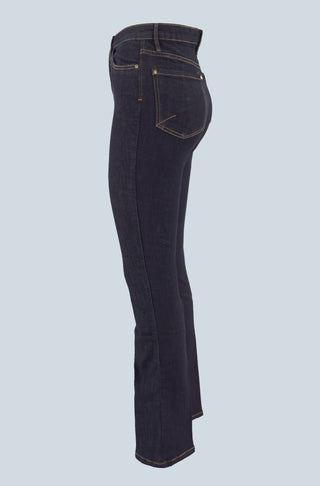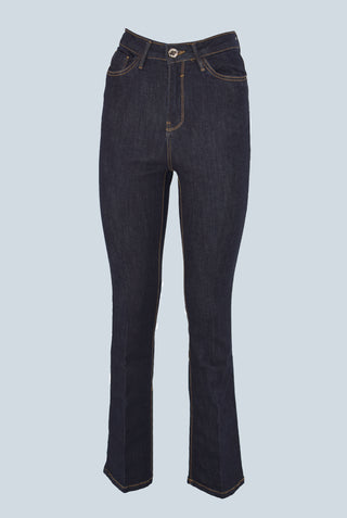 Panta HARBADAM vita alta 5 tasche zampa denim blu