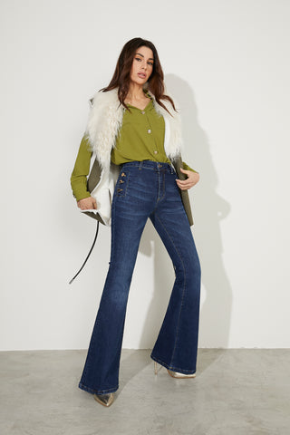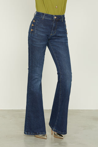 Jeans MAYU vita alta zampa con tasche più patte più bottoni denim